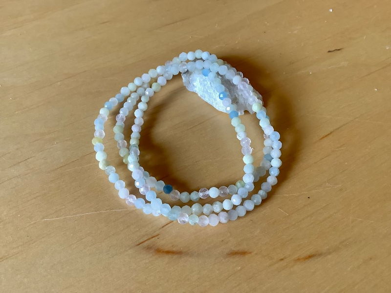 3er Kette Morganit, Aquamarin, Heliodor, elastisch. Für einen Neuanfang.